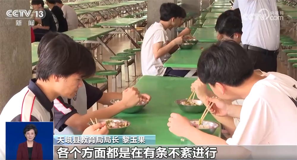 針對(duì)民族中學(xué)積水嚴(yán)重的實(shí)際情況,天峨縣教育局綜合研判并報(bào)當(dāng)?shù)攸h委、政府批準(zhǔn),決定將原設(shè)在天峨縣民族中學(xué)的中考考點(diǎn)改設(shè)到天峨縣高級(jí)中學(xué),天峨縣民族中學(xué)被困在宿舍樓的430名考生也在23日中午安置到天峨縣高級(jí)中學(xué),24日跟其他考生一起在這里參加考試。