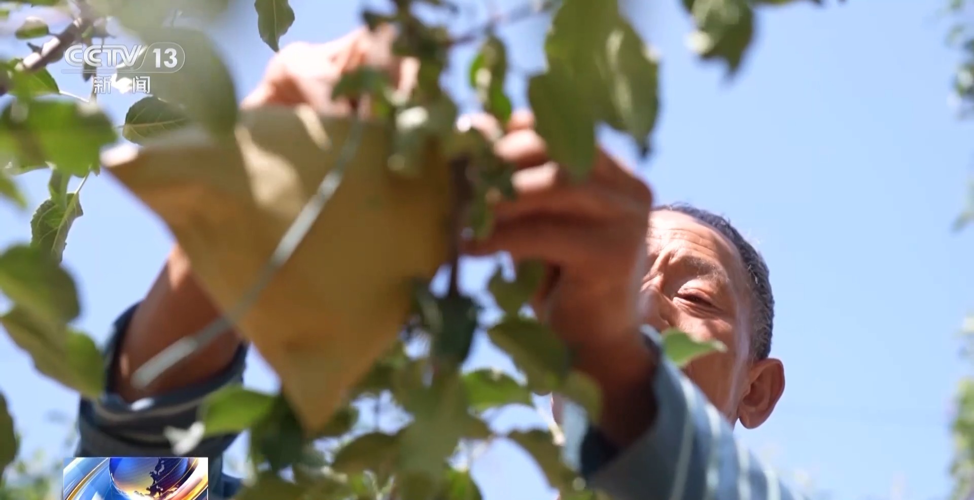 眼下,正是黃土高原上山地蘋果套袋的關鍵時期。在延安市安塞區(qū)南溝村,村民們在果園里忙碌著,為今年的豐收做足準備。