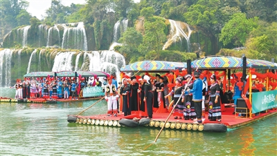崇左市大新縣西與越南接壤。近年來(lái),大新縣充分發(fā)揮跨境旅游合作區(qū)的“磁吸”效應(yīng),以文化旅游加強(qiáng)中越人文交流,開(kāi)辟中越文明交流互鑒新路徑。大新縣舉辦中越德天(板約)瀑布跨境旅游合作區(qū)嘉年華、“三月三”系列活動(dòng)等,推出壯族風(fēng)情舞蹈、中越美食長(zhǎng)桌宴、中越界河山歌擂臺(tái)賽、中越傳統(tǒng)手工藝品集市、中越名特優(yōu)商品促銷(xiāo)活動(dòng)等,讓文化潮聲與德天瀑聲在邊境線上交“響”呼應(yīng)。