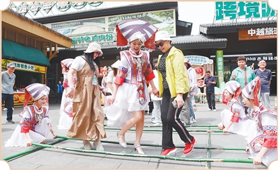 “前幾天,我?guī)Ъ胰巳ブ性降绿欤ò寮s)瀑布景區(qū)玩,游客很多。今天我們碩龍街舉行元春節(jié)活動(dòng),我又見(jiàn)到了那天幾位‘熟面孔’游客。他們玩得開(kāi)心,我們也很高興?!碑?dāng)?shù)厝饲裼烂髟谟^看元春節(jié)民俗文化表演時(shí)說(shuō)。