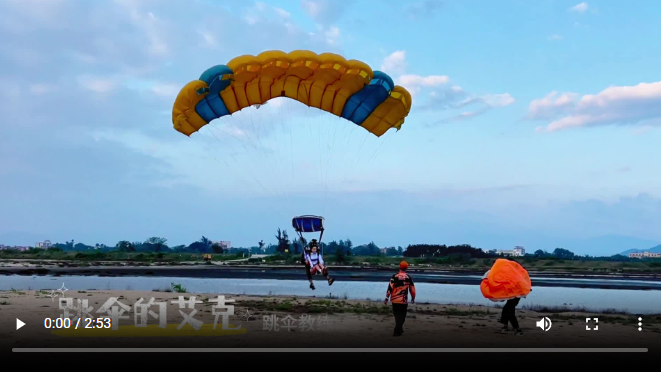 艾克萊姆出生在大美新疆博樂市,是一名職業(yè)跳傘員,也是海南鶯歌海跳傘基地的一名跳傘教練。艾克萊姆喜歡在藍(lán)天白云間自由穿梭的感覺,三年間累計(jì)完成了1000多次的跳傘。艾克萊姆說:“跳傘是一種與天空對(duì)話的方式,是人類對(duì)自由勇敢的追求。在高空中,風(fēng)在耳邊呼嘯,那種感覺無法用言語(yǔ)來形容。”