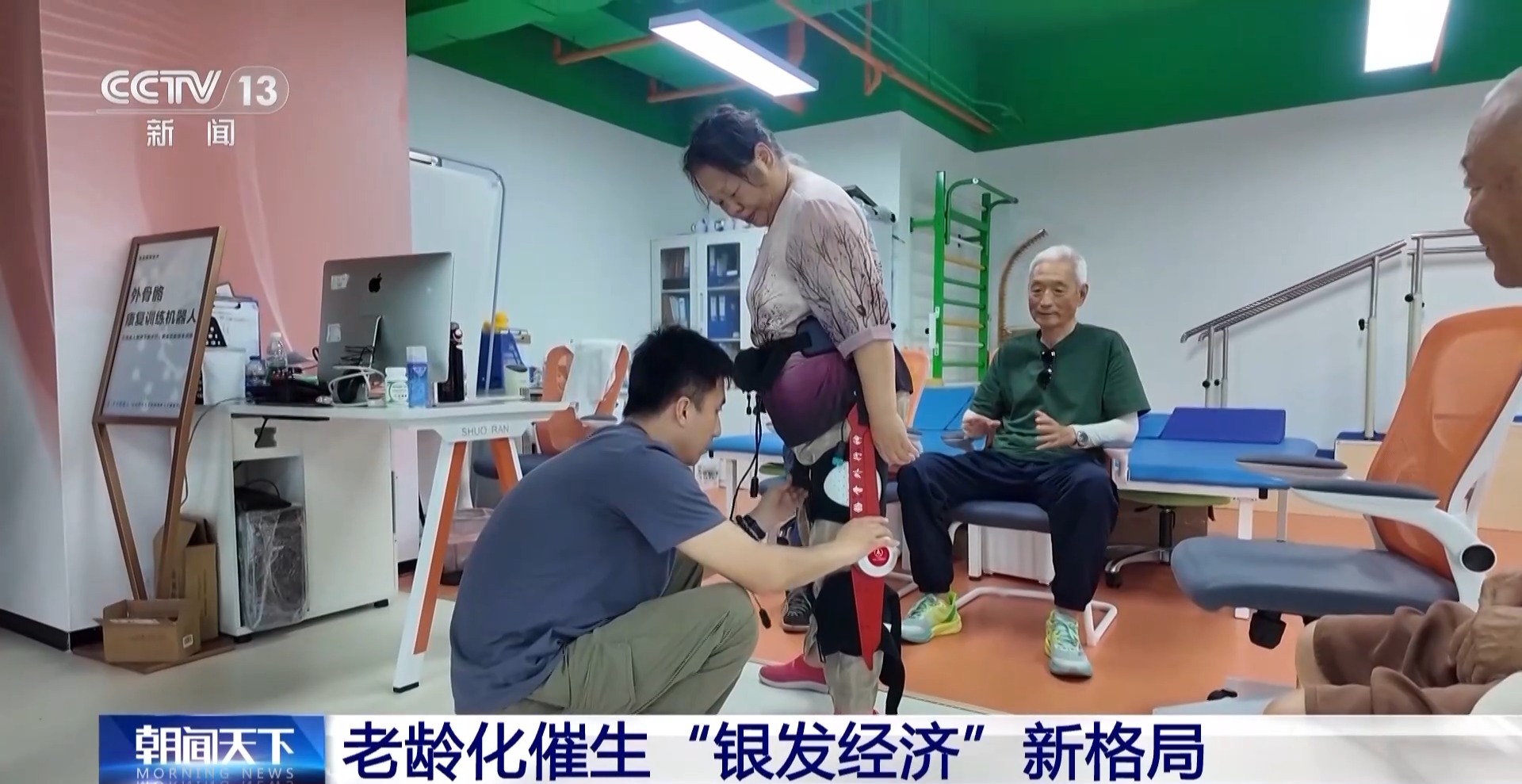 在這個外骨骼機器人康復(fù)訓(xùn)練中心,記者看到幾位老年志愿者正在測試一款助力行走的外骨骼機器人。