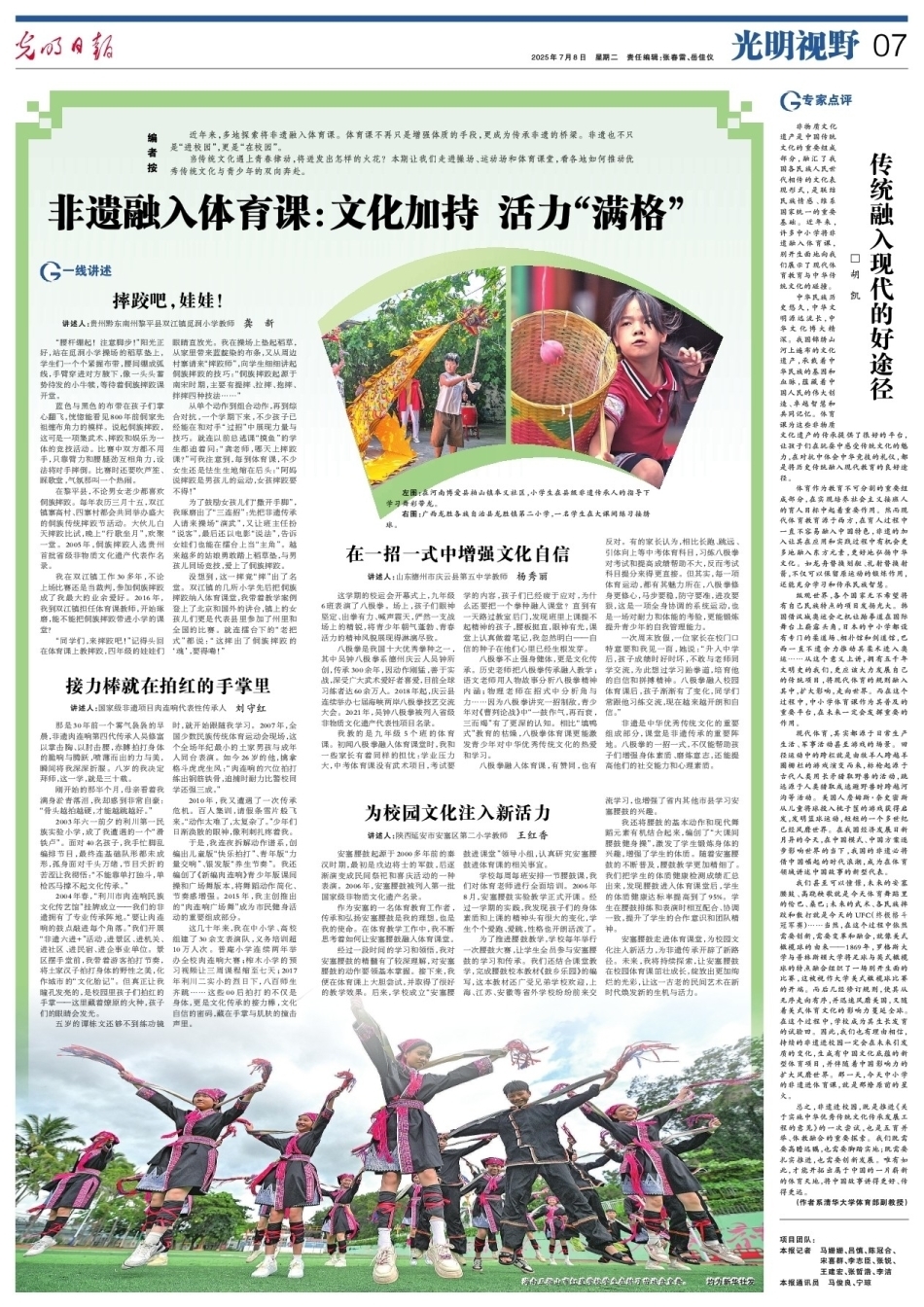 近年來,多地探索將非遺融入體育課。體育課不再只是增強體質的手段,更成為傳承非遺的橋梁。非遺也不只是“進校園”,更是“在校園”。