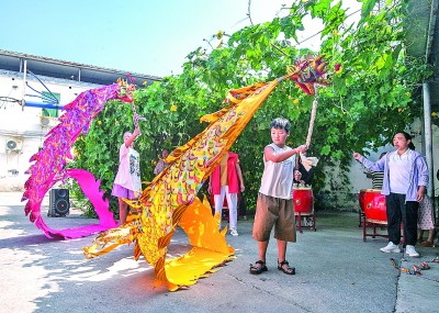 在河南博愛縣柏山鎮(zhèn)奉義社區(qū),小學生在縣級非遺傳承人的指導下學習舞彩帶龍。新華社發(fā)
