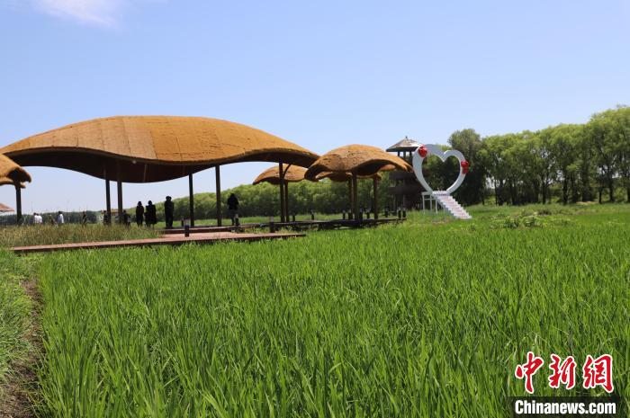 圖為游客在300畝水稻田打卡。 曾令剛 攝