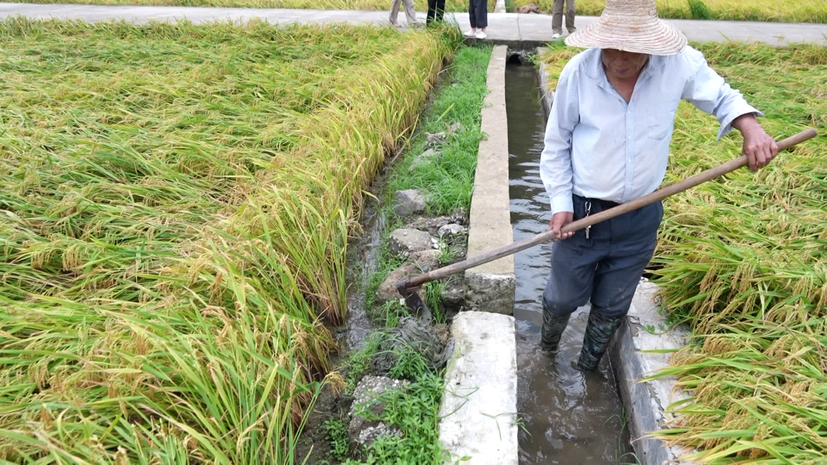 因為合作社的水稻田還處于抽穗灌漿期,因此田里還需留一部分水,有利于水稻后期生長。按照農技干部的指導,合作社負責人和工人將水稻田的積水排出大部分,接下來等天氣晴好,他們就會對倒伏的水稻及時采取捆綁扶正措施,盡量減少在高溫高濕氣候條件下水稻接觸積水會出現(xiàn)發(fā)芽、品質降低的情況。