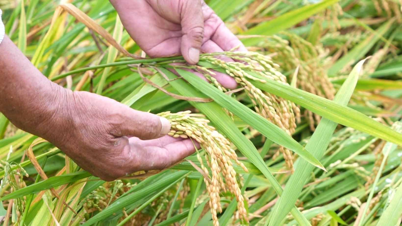 農技專家楊煥清來到現(xiàn)場指導農戶搶收,“它倒平后很容易會發(fā)芽,稻谷發(fā)芽以后就沒有價值了?,F(xiàn)在主要就是開溝排水,一有晴天馬上搶收?!?/p>