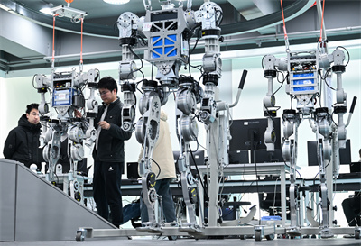 湖北省組織省內(nèi)多所高校、科研院所、企業(yè)進(jìn)行科研攻關(guān)。圖為武漢格藍(lán)若智能技術(shù)股份有限公司研發(fā)團(tuán)隊成員在調(diào)試人形機(jī)器人。新華社發(fā)
