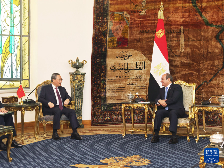李強(qiáng)首先轉(zhuǎn)達(dá)習(xí)近平主席對(duì)塞西總統(tǒng)的親切問候。李強(qiáng)表示,近年來,在兩國元首戰(zhàn)略引領(lǐng)下,中埃關(guān)系蓬勃發(fā)展。中方愿同埃方一道,以明年中埃建交70周年為契機(jī),賡續(xù)傳統(tǒng)友誼,鞏固政治互信,在涉及彼此核心利益問題上繼續(xù)堅(jiān)定相互支持,不斷豐富中埃全面戰(zhàn)略伙伴關(guān)系內(nèi)涵,推動(dòng)兩國各領(lǐng)域合作取得更多成果,朝著構(gòu)建面向新時(shí)代的中埃命運(yùn)共同體的目標(biāo)持續(xù)邁進(jìn)。