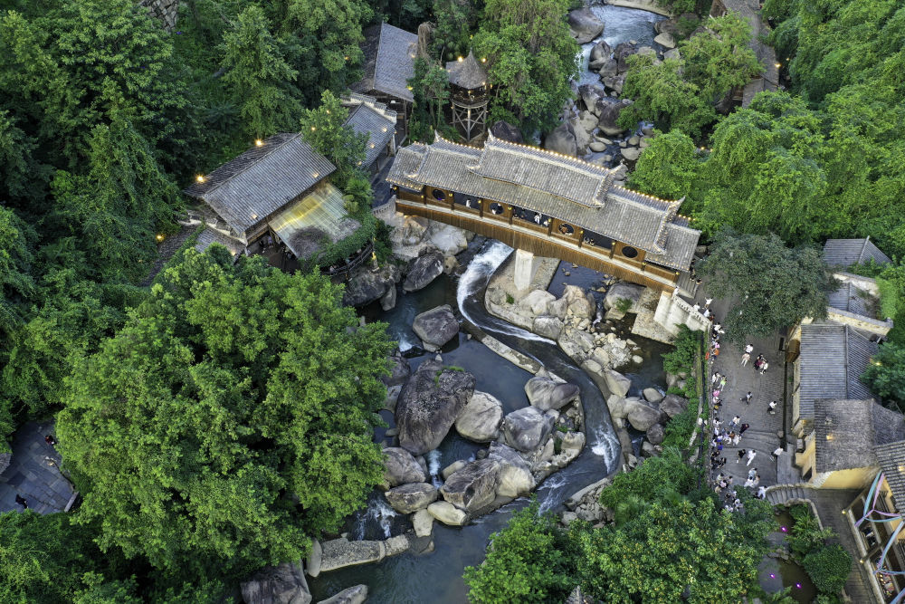修復(fù)后的生態(tài)資源如何發(fā)揮經(jīng)濟效益?2010年,廣信區(qū)引進九牛文旅集團,以峽谷漂流為旅游發(fā)展切入點,花費10多年時間一步步打造出一個集山水人文景觀、民俗體驗、活動演藝于一體的度假旅游區(qū)。九牛文旅集團副總裁熊慧介紹,為了“給游客一個來的理由”,公司在110多米高的懸崖上凌空打造出“懸崖民宿”,客房的設(shè)計布局各不相同,房間地面不是傳統(tǒng)的地板,而是透明的懸空玻璃,游客站在床邊,低頭就能看到飛瀉的瀑布和流淌的溪水。