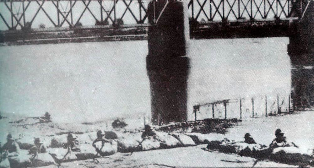 這是江橋抗戰(zhàn)。1931年11月,進(jìn)犯黑龍江的日軍在嫩江橋遭到黑龍江步兵第3旅旅長馬占山部頑強(qiáng)抵抗。新華社發(fā)