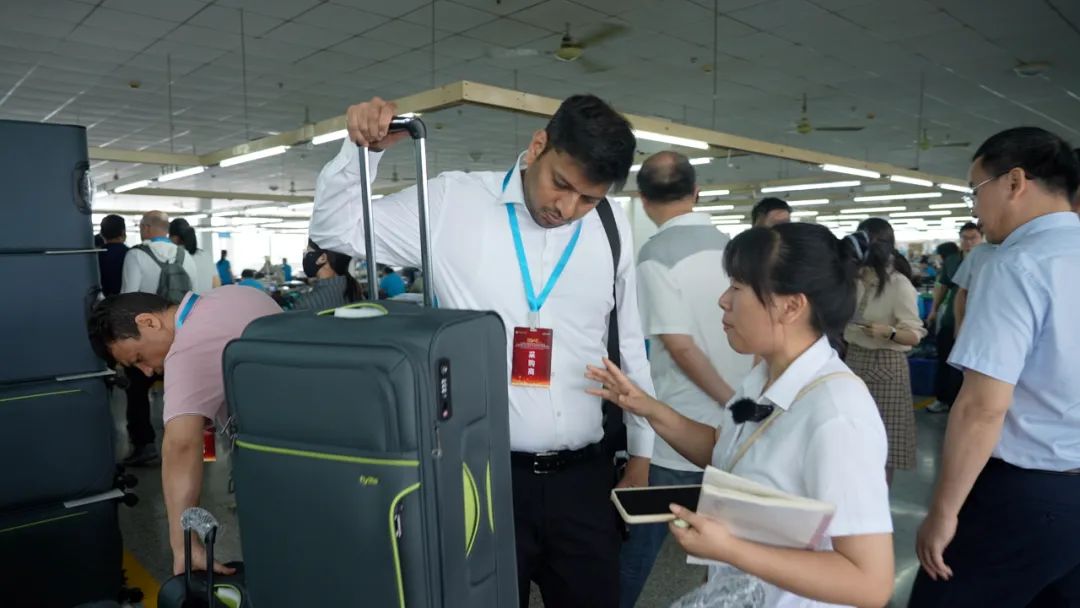最早,當(dāng)?shù)刈龅氖遣剂喟?,用服裝廠的邊角料拼的。如今,產(chǎn)品已從最初的手提包、布袋,升級(jí)為拉桿箱、背包等。有的帶水杯架,甚至還能自己稱(chēng)重、有充電USB接口……