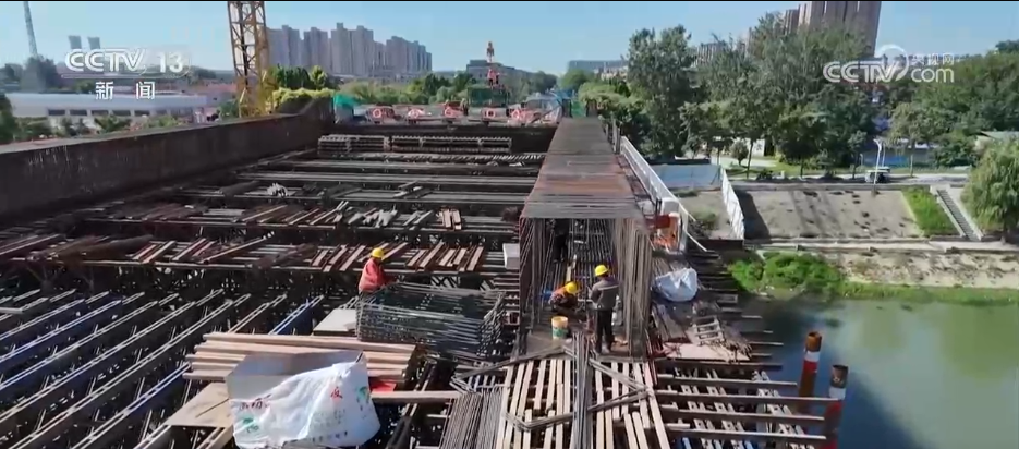 持續(xù)的晴熱天氣給河南各地的重點(diǎn)工程項(xiàng)目和生產(chǎn)一線建設(shè)也帶來“烤”驗(yàn)。這是沙潁河周口至省界航道提升工程通濟(jì)大道橋施工現(xiàn)場,工人們正在安裝橋面鋼筋。工人們穿戴了一款特殊的空調(diào)防護(hù)服,通過內(nèi)置風(fēng)扇和冰袋循環(huán)系統(tǒng)進(jìn)行降溫。