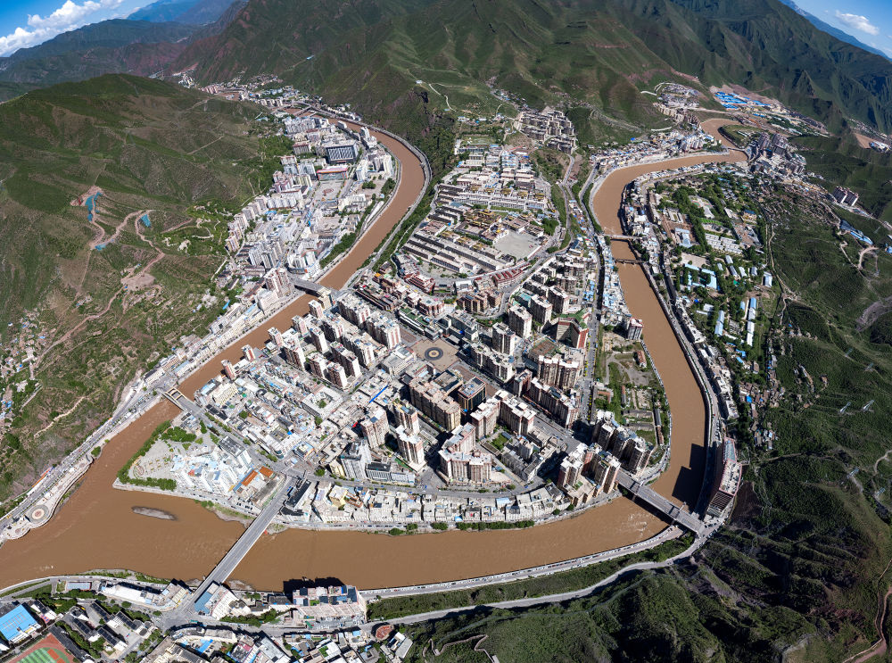 鳥瞰扎曲河和昂曲河交匯處的昌都市。新華社記者 姜帆 攝