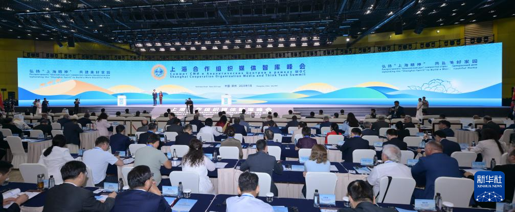 這是7月25日拍攝的上海合作組織媒體智庫峰會全體會議現(xiàn)場。新華社記者 高潔 攝