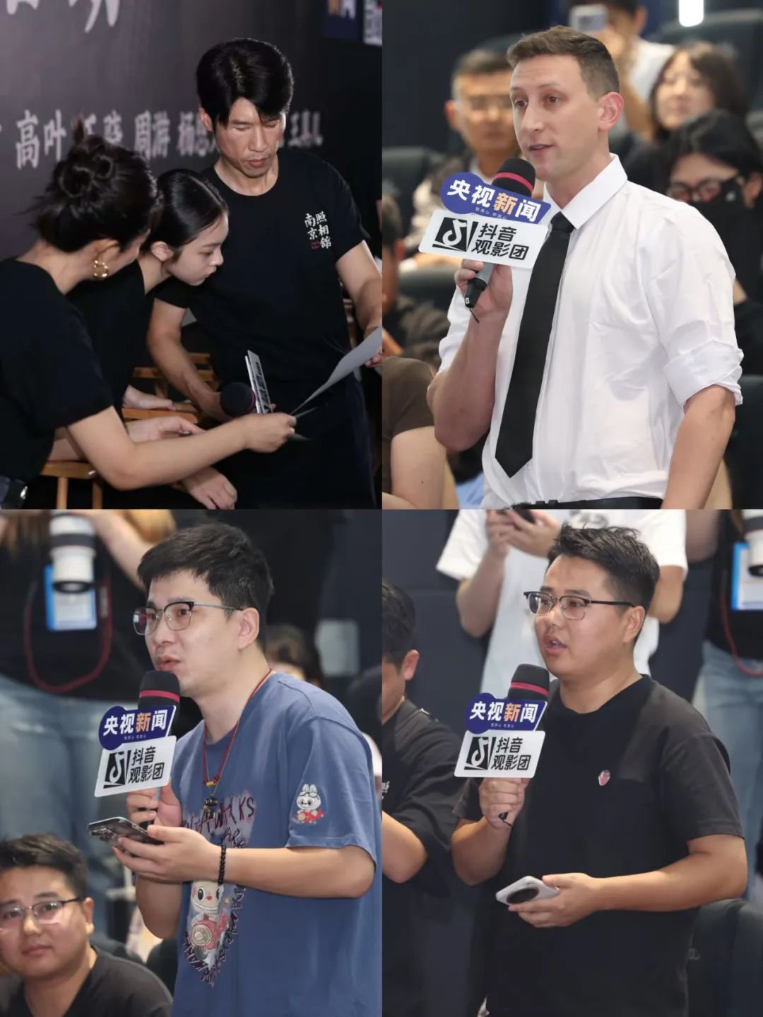 影片導(dǎo)演申奧,演員劉昊然、王傳君、高葉、王驍、楊恩又、王真兒來到央視新聞?dòng)^影團(tuán)現(xiàn)場(chǎng),與觀眾進(jìn)行互動(dòng)。二戰(zhàn)相冊(cè)捐贈(zèng)者埃文·凱爾,也受邀來到活動(dòng)現(xiàn)場(chǎng),共同觀影交流。
