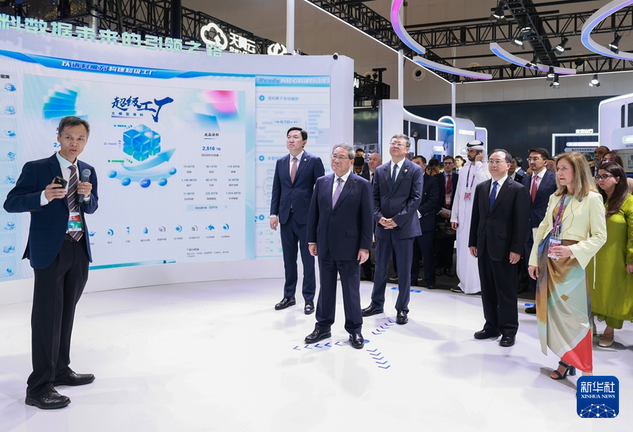 開幕式后,李強同與會外方嘉賓、國際組織代表共同巡館,并與有關(guān)科研機構(gòu)和企業(yè)負責(zé)人互動交流。