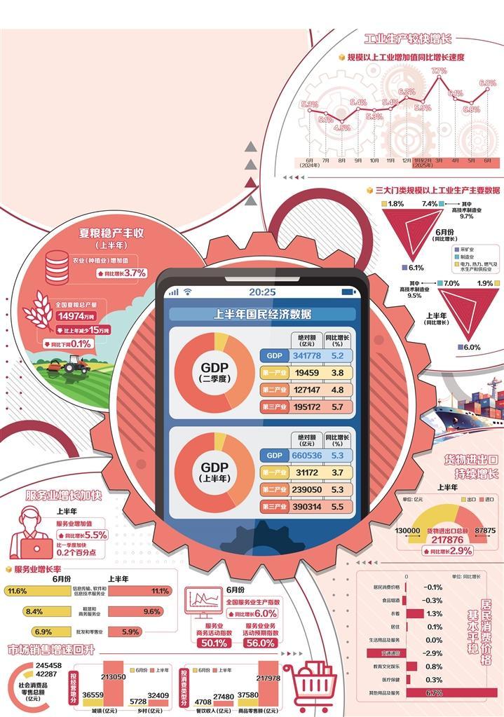2025年上半年,中國經濟頂壓克難,在復雜“路況”中穩(wěn)定前行,高質量發(fā)展向新向好,展現出強大韌性和活力。