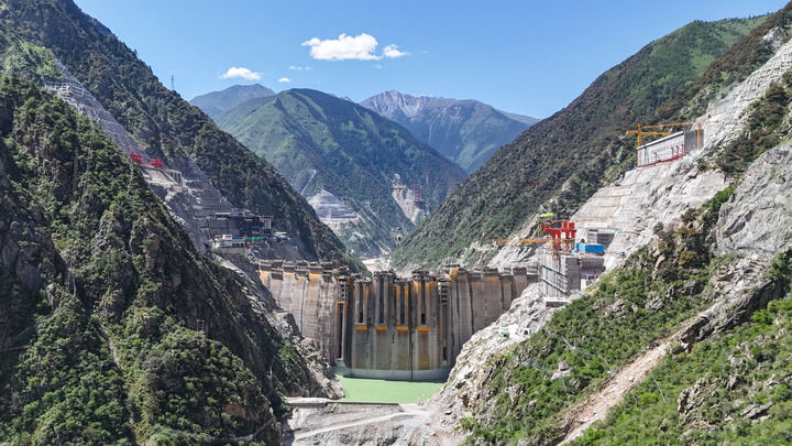 這是2025年6月30日拍攝的建設(shè)中的葉巴灘水電站(無人機(jī)照片)。該水電站地處四川甘孜州白玉縣與西藏昌都市貢覺縣交界處的金沙江上游,總裝機(jī)容量224萬千瓦。新華社發(fā)(陳浩 攝)