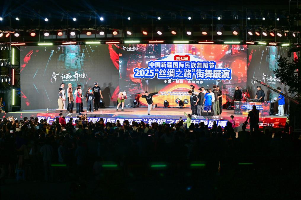 8月3日晚,在第七屆中國(guó)新疆國(guó)際民族舞蹈節(jié)2025“絲綢之路”街舞展演的舞臺(tái)上,國(guó)內(nèi)外舞者相聚克拉瑪依市同臺(tái)亮相,用街舞語(yǔ)言講述追夢(mèng)的青春故事。