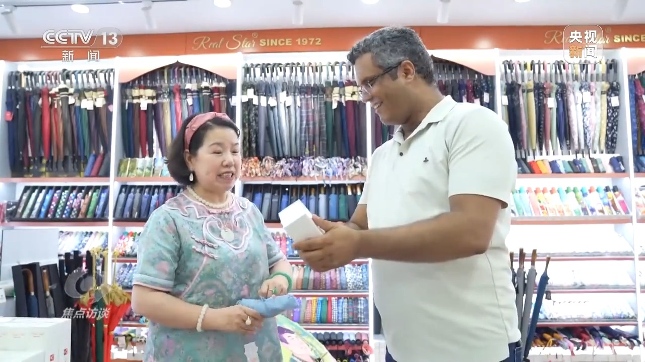 張吉英告訴記者,她父親做了一輩子傘,1997年她帶著父親的期許和家傳的老手藝,從紹興上虞來(lái)到義烏創(chuàng)業(yè),從一米攤位起家,發(fā)展到成立自己的企業(yè),開(kāi)啟公司化運(yùn)營(yíng)。隨著企業(yè)的發(fā)展壯大,2010年張吉英開(kāi)始打造自主品牌,2013年借“一帶一路”倡議的東風(fēng),她的公司在100多個(gè)國(guó)家注冊(cè)了涵蓋20多大類的傘具品牌商標(biāo),開(kāi)發(fā)出超3000種自主設(shè)計(jì)產(chǎn)品,成功在國(guó)際市場(chǎng)打響了自己的品牌。