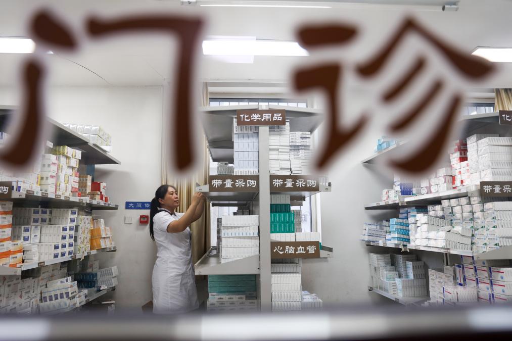 在河北省石家莊晉州市中醫(yī)院,醫(yī)務(wù)人員在門(mén)診藥房為患者取藥。新華社發(fā)(賈再興 攝)