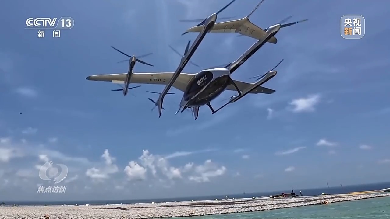 這天,一架兩噸重的電動(dòng)垂直起降航空器搭載著水果和藥品,從深圳市區(qū)起飛,歷經(jīng)58分鐘的跨海域飛行,抵達(dá)距深圳海岸線150公里的海上油氣平臺(tái),為平臺(tái)工作人員送去物資。