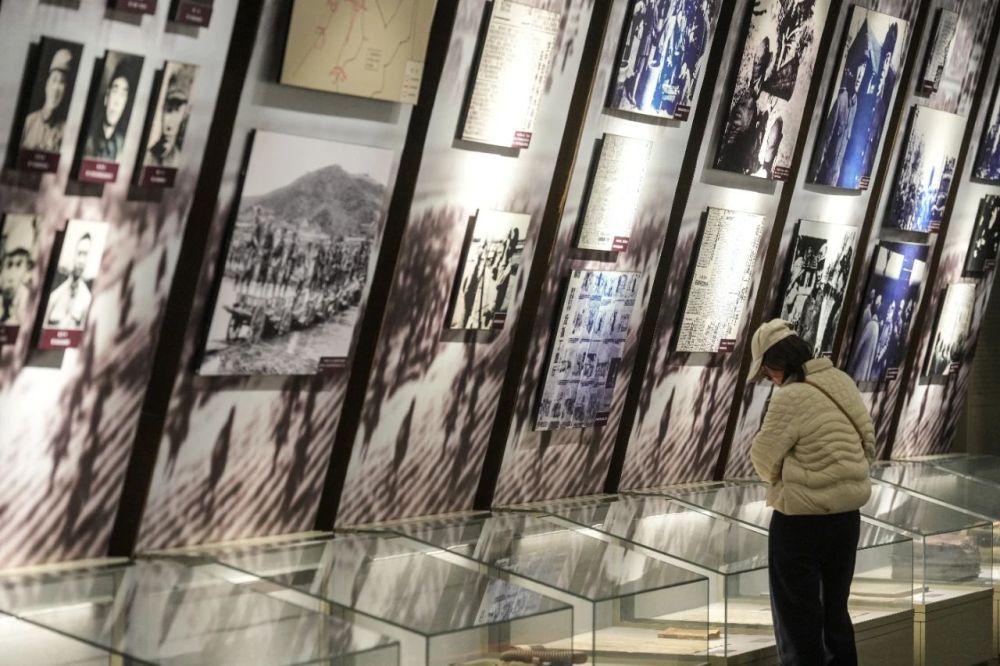 參觀者在遼沈戰(zhàn)役紀念館內參觀(4月1日攝)。遼沈戰(zhàn)役紀念館收藏了穆青同志采寫的《東北抗日聯(lián)軍斗爭史略》。新華社記者潘昱龍攝