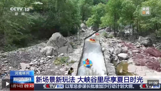 在河南林州太行大峽谷,旅游業(yè)態(tài)持續(xù)“上新”,這是升級后的峽谷漂流,沿途中增加了“水炮”“喊麥”等環(huán)節(jié),增強(qiáng)了游客的互動(dòng)感。