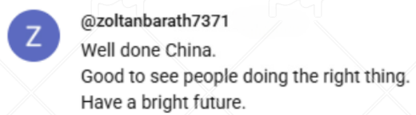 網(wǎng)友@zoltanbarath7371稱贊道,“干得好,中國。很高興看到人們?cè)谧稣_的事情。祝愿中國未來一片光明?!?/p>