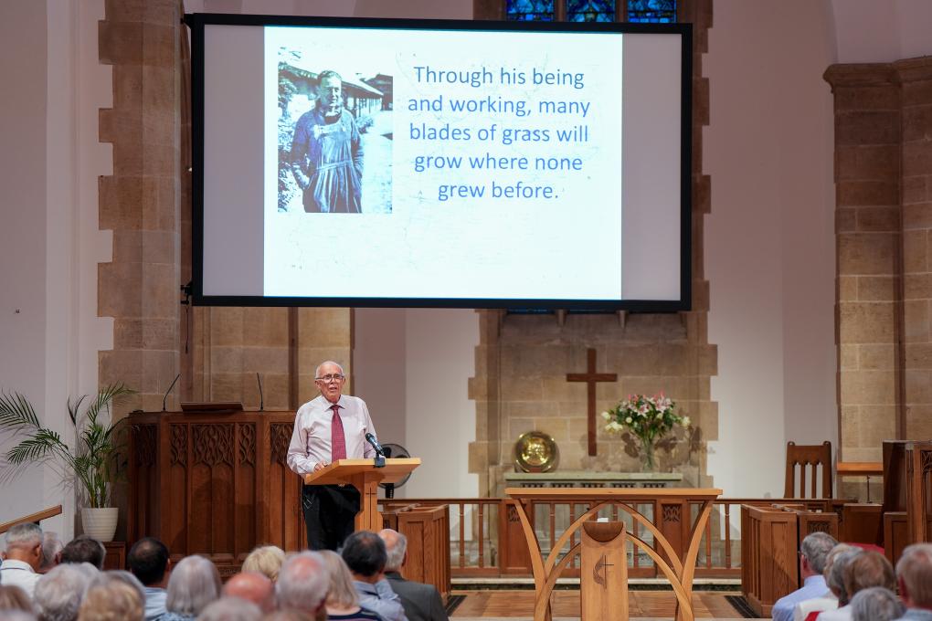 7月22日晚,英國(guó)赫特福德郡哈彭登鎮(zhèn),何克逝世80周年紀(jì)念活動(dòng)現(xiàn)場(chǎng),座無虛席。屏幕上,一幀幀畫面定格下何克在中國(guó)的身影與足跡。講臺(tái)上,何克的外甥馬克·艾爾溫·托馬斯深情講述80多年前的往事。
