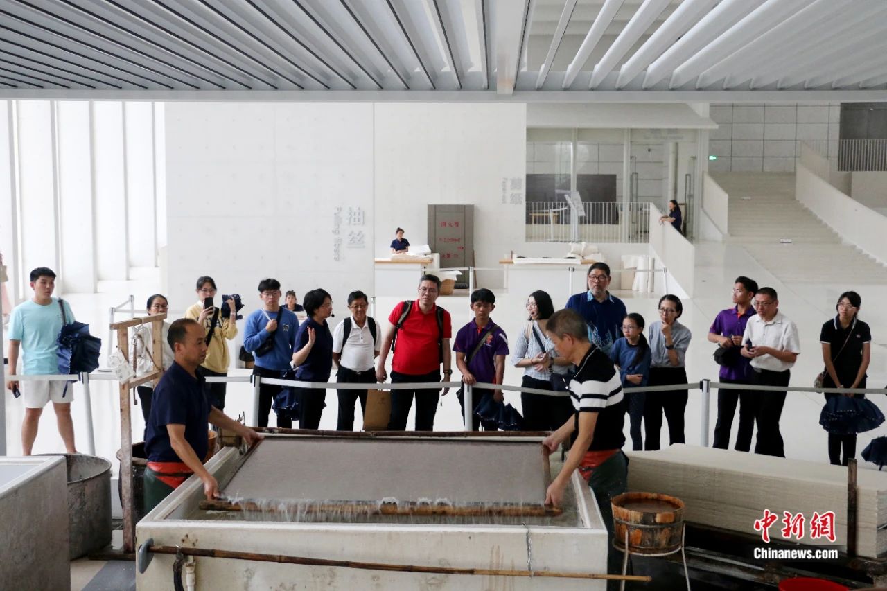 游客在非遺體驗館可親手體驗撈紙、曬紙等工序;夜晚則可欣賞沉浸式新媒體互動表演《只緣身在紙山中》……如今,涇縣全域正加快推動宣紙產(chǎn)業(yè)與紅色文旅、節(jié)慶等跨界融合,激活古老非遺新活力;發(fā)布“紙墨古鎮(zhèn)·紅色記憶研學(xué)”旅游線路,將當?shù)刂匾锩f址、宣紙文化園等文旅地標串珠成鏈,使非遺探索與紅色文化巡禮緊密結(jié)合。