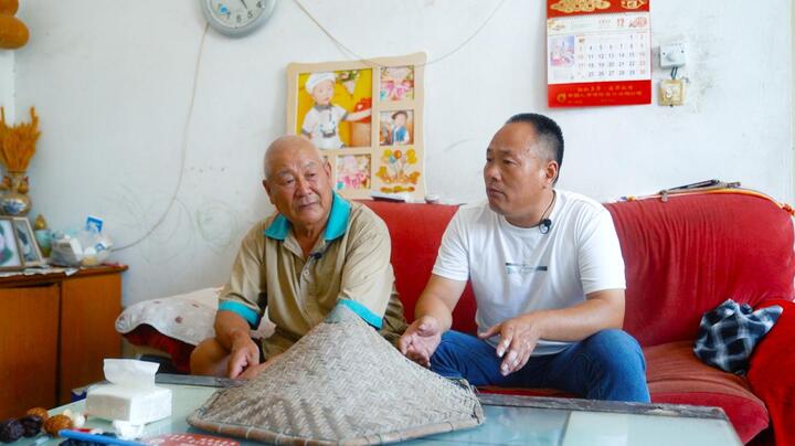 王脈鳳的外孫閆桂亮老人(左)講述自己的外祖母王脈鳳