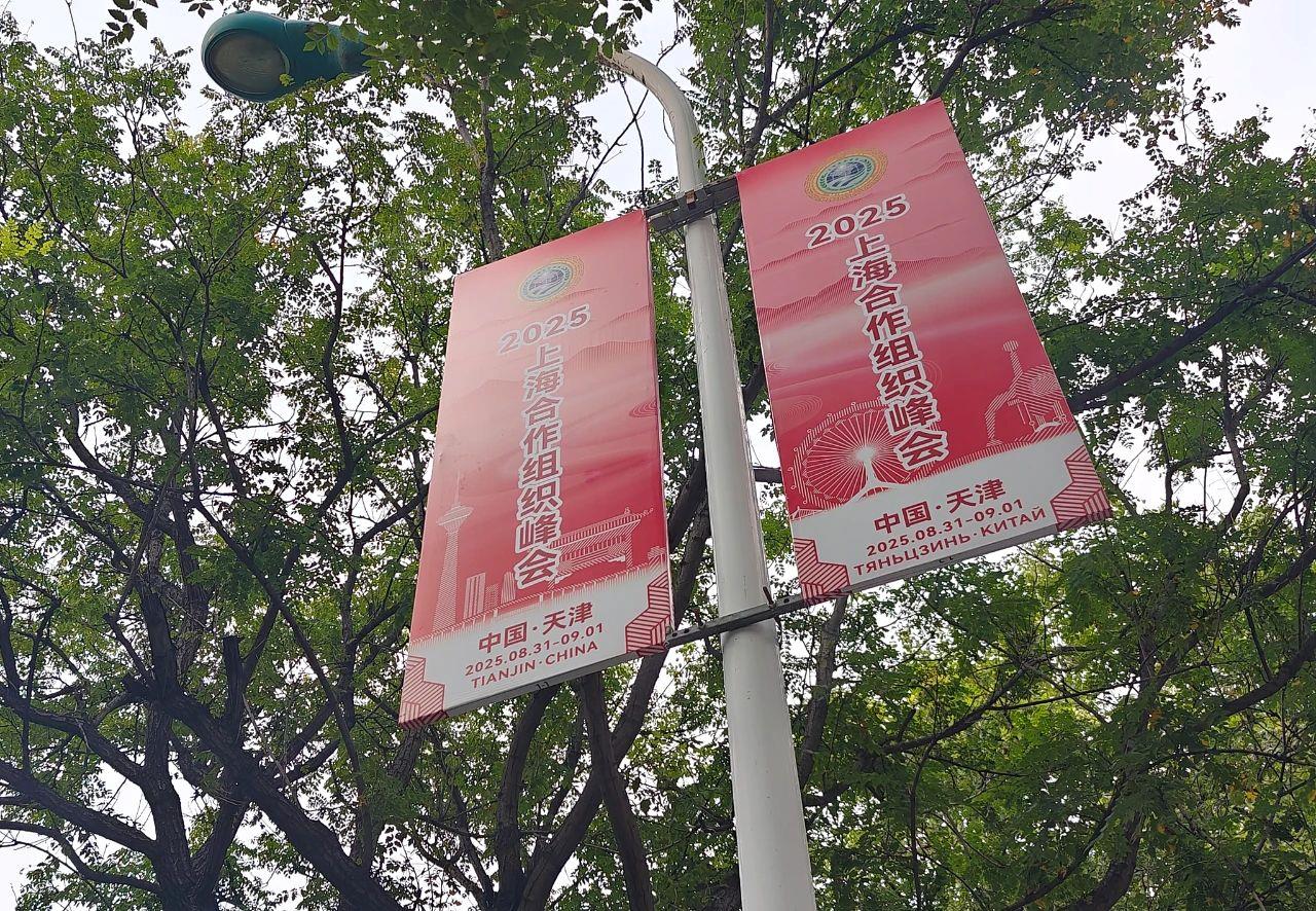 走進天津,會發(fā)現(xiàn)體現(xiàn)上合元素的旗幟已經掛滿天津主干道路兩側,賞心悅目的花籃也點綴在大街小巷。