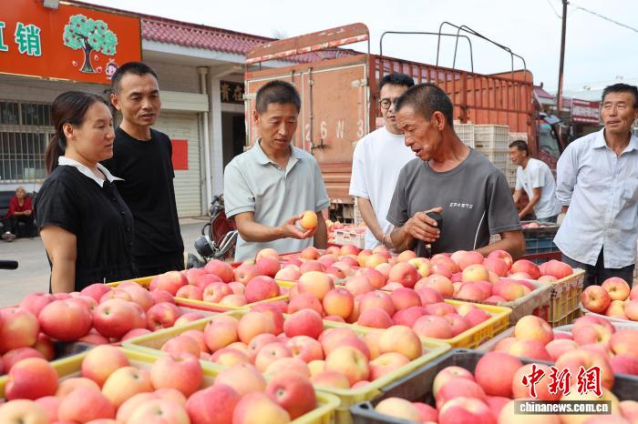 來自江西的客商沈竹清,在洛川收購蘋果已有三十多年,是當?shù)毓r(nóng)的“老熟人”。他告訴記者,洛川蘋果憑借出眾的口感和過硬的品質(zhì),在全國市場上一直很受歡迎,不愁銷路。為了搶占今年的水果市場,他提前半個月就開始在洛川設(shè)點收購,開足馬力趕進度。
