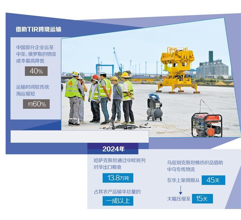 在區(qū)域產(chǎn)業(yè)鏈協(xié)同方面,TIR運(yùn)輸也為企業(yè)與成員國(guó)帶來了實(shí)實(shí)在在的收益:中國(guó)部分企業(yè)借助TIR跨境運(yùn)輸,將運(yùn)至中亞、俄羅斯的物流成本最高降低40%,運(yùn)輸時(shí)間較傳統(tǒng)海運(yùn)縮短約60%;2024年,哈薩克斯坦通過中歐班列對(duì)華出口糧食13.8萬噸,占其農(nóng)產(chǎn)品輸華總量的一成以上;烏茲別克斯坦的棉紡織品借助中烏專線物流,在華上架周期從45天大幅壓縮至15天。在產(chǎn)業(yè)鏈協(xié)同層面,汽車零部件、電子元件等中間品成了跨境電商新增長(zhǎng)點(diǎn),標(biāo)志著區(qū)域合作正從商品貿(mào)易向產(chǎn)業(yè)鏈深度融合升級(jí),通過降成本、提效率、拓品類,實(shí)現(xiàn)了上下游產(chǎn)業(yè)鏈的互利共贏。