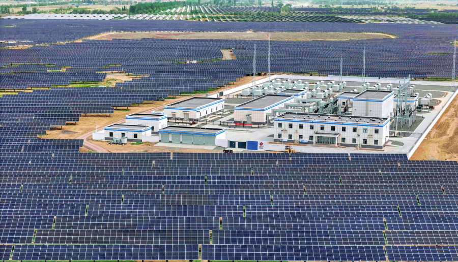 新疆生產(chǎn)建設(shè)兵團第八師石河子市的一處100萬千瓦光伏基地(2024年5月14日攝)胡虎虎攝/本刊
