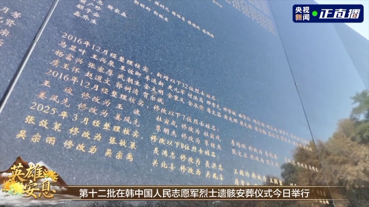 9月13日上午,第十二批在韓中國(guó)人民志愿軍烈士遺骸安葬儀式在遼寧沈陽(yáng)抗美援朝烈士陵園舉行。