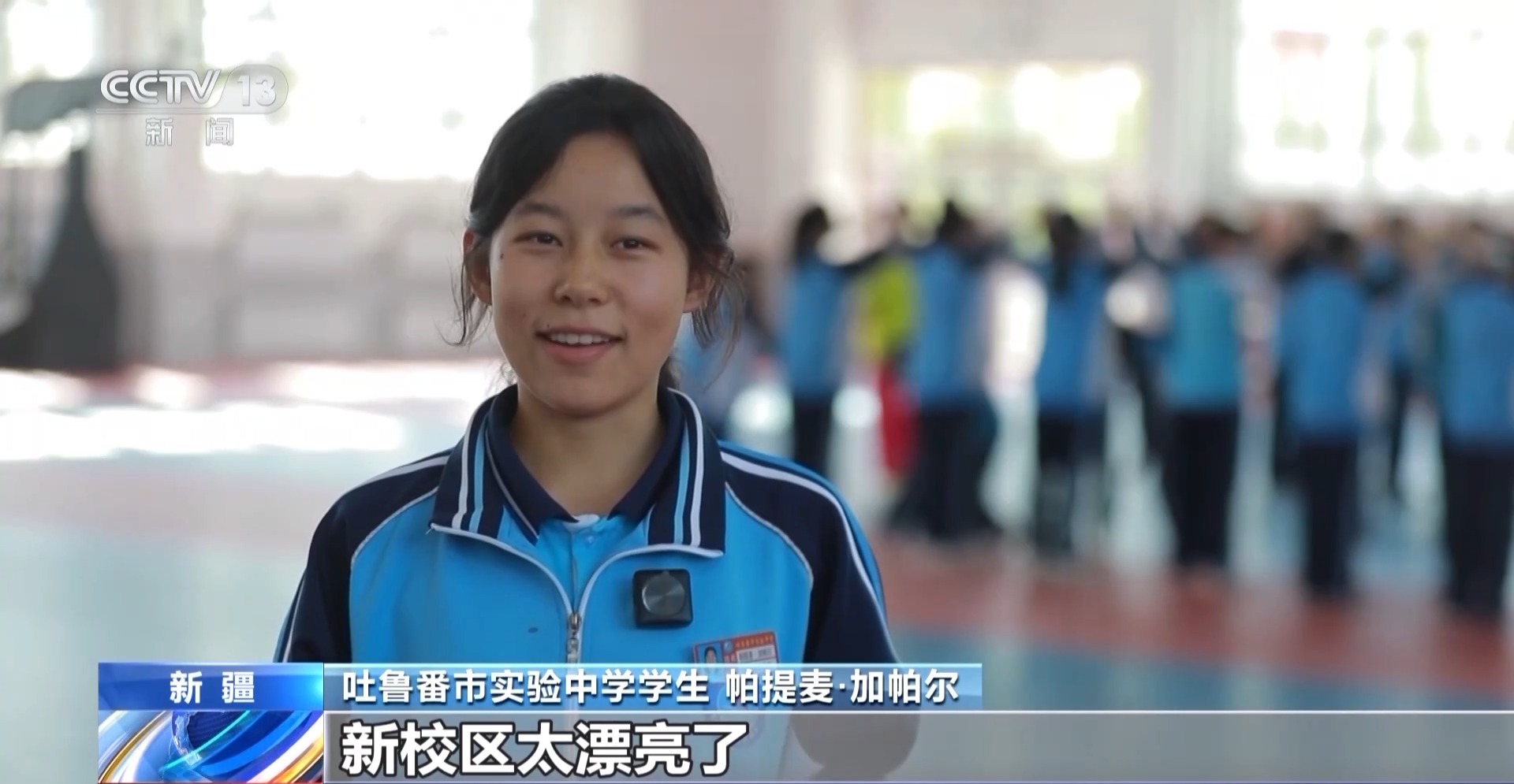 吐魯番市實驗中學(xué)學(xué)生 帕提麥·加帕爾:新校區(qū)太漂亮了,在這里我現(xiàn)在學(xué)習勁頭兒十足,已經(jīng)愛上這里的生活了。