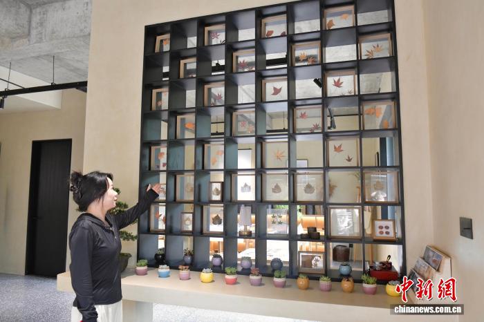 和孫敏一樣想法的還有“90后”民宿店長(zhǎng)徐長(zhǎng)英。楓葉耳飾、樹葉狀的器皿、各種落葉標(biāo)本做成的裝飾墻……庭院里,她打理著一間“秋日集合地”。