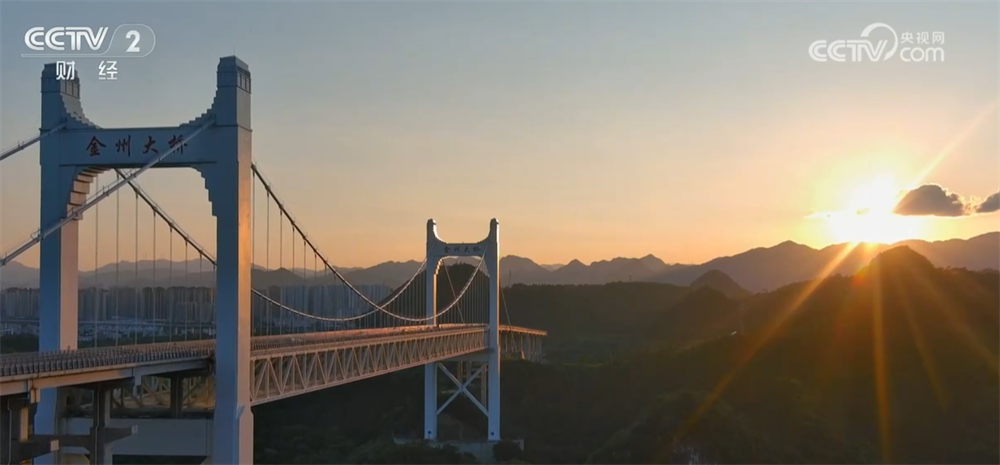 金州大橋位于貴州興義市,是貴州首座設(shè)有城市軌道交通空間與旅游觀光通道的懸索橋。“橋旁賞落日、橋上瞰山河、橋下觀飛瀑”的立體化旅游新模式,吸引了眾多游客和市民前來觀景游玩。
