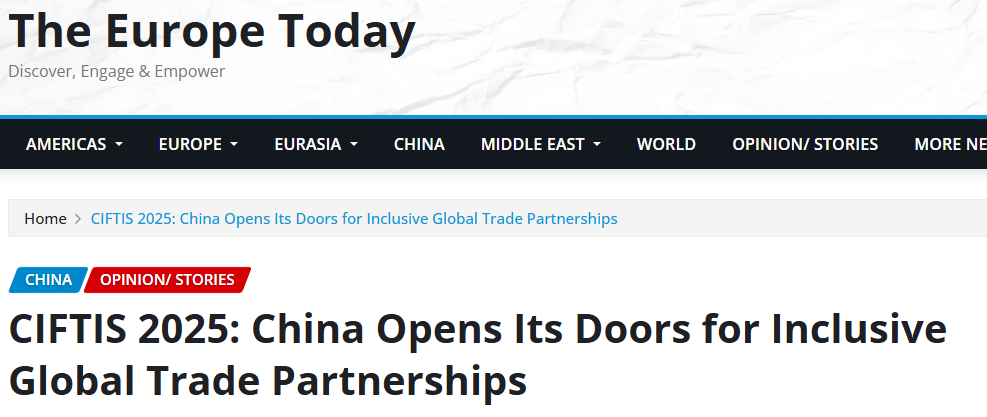 今日歐洲網(wǎng)站(The Europe Today)13日的報道指出,服貿(mào)會展示了中國對包容、開放和前瞻性的服務(wù)貿(mào)易的承諾。中國持續(xù)擴大市場準(zhǔn)入,為全球企業(yè)創(chuàng)造廣闊機遇。