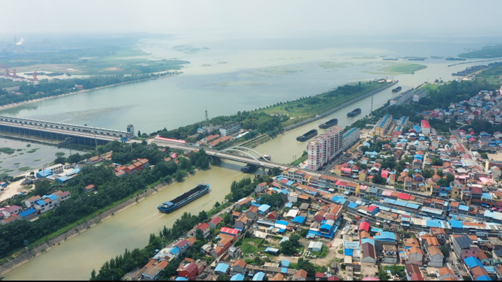 站在山東省濟(jì)寧市微山縣韓莊鎮(zhèn)的韓莊運(yùn)河橋上遠(yuǎn)眺,一側(cè)是水天相接、煙波浩渺的微山湖,另一側(cè)是奔流千年、一路東去的大運(yùn)河。