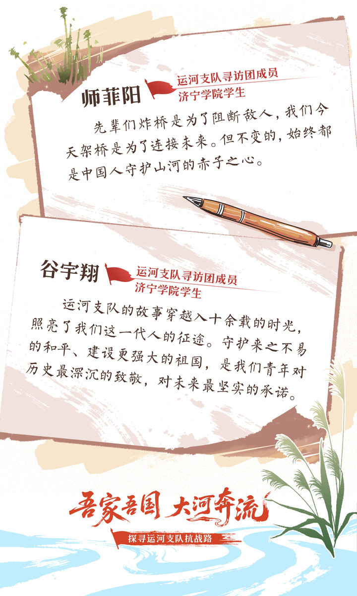 他們與鐵道游擊隊(duì)并肩作戰(zhàn),故事卻長(zhǎng)期散落。今年是中國人民抗日戰(zhàn)爭(zhēng)暨世界反法西斯戰(zhàn)爭(zhēng)勝利80周年,新華日?qǐng)?bào)交匯點(diǎn)新聞推出“吾家吾國 大河奔流——探尋運(yùn)河支隊(duì)抗戰(zhàn)路”系列融媒報(bào)道。記者和大學(xué)生組成尋訪團(tuán)重走歷史現(xiàn)場(chǎng),首次披露眾多不為人知的內(nèi)容,顯影歷史細(xì)節(jié)里的傳奇,以新時(shí)代青年視角傳承和弘揚(yáng)偉大抗戰(zhàn)精神,讓那些艱苦卓絕的斗爭(zhēng)、反抗侵略的決心、不畏犧牲的勇氣、不容忘卻的面孔再一次撥動(dòng)人們的心弦。