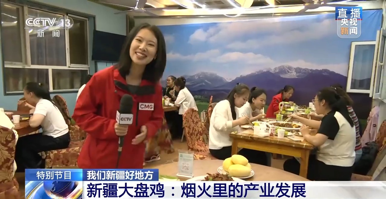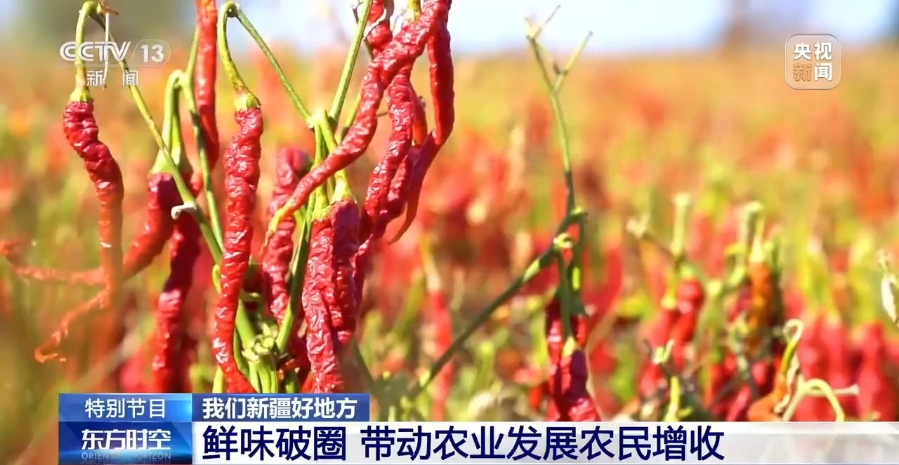 說完了主角,再來說說配菜。這里面的土豆來自博爾通古鄉(xiāng)。最關(guān)鍵的辣椒,是當?shù)氐闹饕r(nóng)作物,來自“辣椒之鄉(xiāng)”安集海鎮(zhèn)。過去這里的辣椒只是農(nóng)民零散種植,如今已經(jīng)形成了從育種、種植、加工到銷售的完整產(chǎn)業(yè)鏈。這些辣椒不僅給大盤雞“注入靈魂”,也滿足了全國的餐桌需求,還出口到韓國、日本等地。