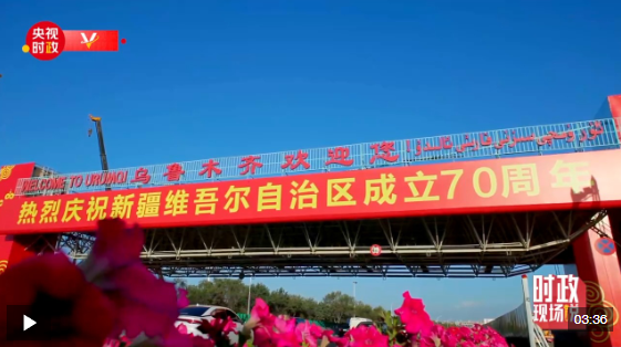 中共中央總書記、國家主席、中央軍委主席習(xí)近平率中央代表團(tuán)23日下午乘專機(jī)抵達(dá)烏魯木齊,出席新疆維吾爾自治區(qū)成立70周年慶?;顒?dòng)。14時(shí)20分許,習(xí)近平乘坐的專機(jī)在天山國際機(jī)場降落,等候在停機(jī)坪的新疆各族各界群眾熱烈歡呼。習(xí)近平走下舷梯時(shí),少先隊(duì)員獻(xiàn)上鮮花。各族群眾代表身著民族服飾,載歌載舞,歡迎總書記的到來,表達(dá)對(duì)總書記的衷心祝福。