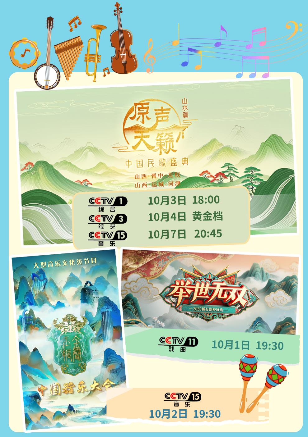 文藝節(jié)目,出新出彩!輕體量小鎮(zhèn)音樂會(huì)、稻田音樂會(huì)、河灘音樂會(huì),《原聲天籟-中國民歌盛典》用民歌描繪山水間幸福畫卷。《金聲玉振——中國器樂大會(huì)》將賈湖骨笛、箜篌等古樂器與當(dāng)代編曲結(jié)合,奇妙組合帶來全新聽覺體驗(yàn)。《舉世無雙 2025稀有劇種盛典》匯集雁北耍孩兒、湖劇、阿宮腔等三十余個(gè)稀有劇種,盡展中華戲曲百花園獨(dú)特風(fēng)采。