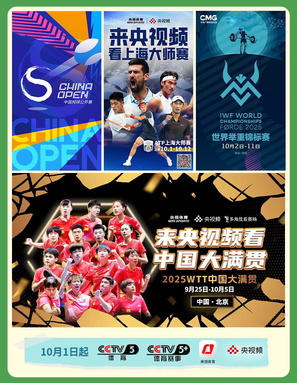 精彩賽事,激情無限!《2025年中國網(wǎng)球公開賽》《2025年世乒聯(lián)大滿貫賽(中國站)》《2025年ATP1000男子網(wǎng)球大師賽(上海賽)》《2025年世界舉重錦標(biāo)賽》等黃金賽事接連開賽,讓體育迷暢享運(yùn)動(dòng)的無窮魅力。