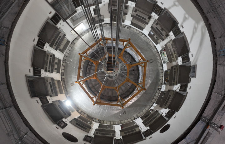 這是2025年10月1日在安徽合肥未來大科學(xué)城緊湊型聚變能實驗裝置(BEST)建設(shè)現(xiàn)場拍攝的成功落位安裝的杜瓦底座(無人機(jī)照片)。新華社記者 周牧 攝