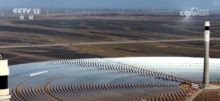 園區(qū)中,23000多面定日鏡如同一個(gè)個(gè)精準(zhǔn)的“追光者”,通過(guò)智能控制系統(tǒng)實(shí)時(shí)追蹤太陽(yáng)軌跡,將分散的太陽(yáng)光集中反射到高達(dá)200多米的吸熱器上,再通過(guò)大容量熔鹽儲(chǔ)熱系統(tǒng),實(shí)現(xiàn)24小時(shí)連續(xù)穩(wěn)定供電。